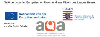 Gefördert wird das Angebot von der Europäischen Union und aus Mitteln des Hessischen Ministeriums für Arbeit, Integration, Jugend und Soziales. Kofinanziert durch die aQa GmbH Gründau.