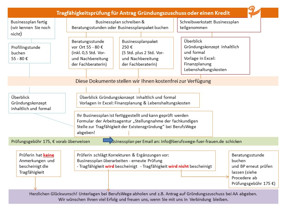 Wir prüfen anhand Ihres Businessplanes die Tragfähigkeit Ihres Gründungsprojektes und beraten Sie, wenn es an der einen oder anderen Stelle noch „klemmt“. Nach erfolgreicher Prüfung erhalten Sie eine Bescheinigung über die Tragfähigkeit.